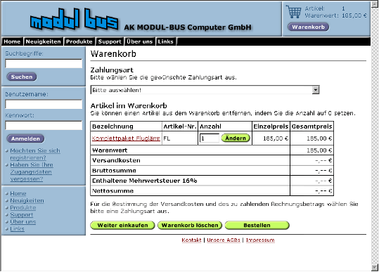 Bitte wenden Sie sich bei Fragen/Problemen an den Support von AK Modul-Bus.